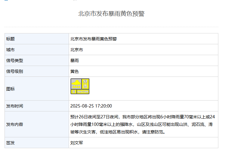 作者:admin2025年8月26日2025年8月26日对“北京由于大雨发出黄色警告 – 北京新闻”作出评论 据北京的天气办公室称,北京新闻对大雨发出了黄色警告。从26个晚上到27个晚上,预计我们城市的部分地区在24小时内6小时内会体验超过70毫米的大雨。在山区和浅山地区,可能发生山地,滑坡和滑坡等次要灾难,这使水积聚更可能发生在低地。注意预防措施。 Chen Yanting编辑