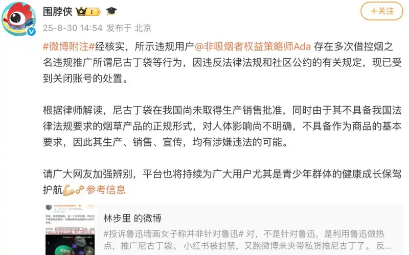 ▲MS。太阳是抱怨“ Lu Xun’s Smoke”壁画的一部分,它阻止了对非吸烟者权利战略家Ada的微博说明。照片/圣维波的屏幕捕获。微博禁止他,抱怨“ Lu Shun香烟”。 8月30日,微博社区观察者的官方帐户@Small小型小型小型用户是Sun夫人,他参加了“ Lu Xun’s Smoke”的壁画。他说:“我希望将来,没有人学会在Tigabet de lu Xun的绘画面前吸烟并照亮香烟”,直到他在8月22日出版了“道歉”。在过去的一周中,吸烟lu Xun一直吵闹和borning。当地对“卢Xun,尊重的历史,尊重艺术”的回答清楚地宣布为丑闻的投诉,但San显然无法逃脱。人们感到惊讶的是,圣人总是说自己对孩子健康,但原来是尼古丁袋卖家,而不是simp the香烟控制志愿者。自5月20日以来25,Sun已开始在平台帐户(例如“厕所空气”)中发布有关有害的第二次烟雾的出版出版物。她在主页上清楚地说:“最大的目标是电子多巴哥,只有“尼古丁袋。根据该报告,尼古丁袋是批准在我国生产和销售的免费口服尼古丁的新产品。“有“用绵羊的头卖狗肉”很有趣,很生气。您选择专注于Lu Xun,为什么愿意放弃这些问题,而没有“ lu Xun的烟雾”,就像互联网用户的愤怒一样,自然而然地无可挑剔,而Lou Xun是他的“发hair sed cesterpor”的主题T,这种发掘当然非常好。但是,太阳可能无法计算出世界在世界上是公平和自由的,而Lou Xun可以做任何吸烟。公众不仅在这种舆论混乱中奋斗,而且Xun吸烟的形象坚定地保护了“ lu Xun吸烟”的历史事实,并相信Lu会不会欺骗Pouter和风景如画的地方,Lu Xun Memorial将具有清晰的态度和坚定的态度和坚定的态度。我喜欢我的心,但我的嘴里很正确。近年来,互联网上类似的“战斗飞机”并不少见。无论是公共福利还是正义,对他们来说,他们都是实现个人目标的国际象棋,可以自由携带和投掷。这些公司反复中断公众舆论并表现出宝贵的社会信誉。 SAN反对公众,被组织拒绝,由平台禁止,反映了过去历史的“热量和尊重”,并纠正个人UAL认知概念和合理的收率。此外,这个现实是一个社交平台,即使问题变得有问题,以提醒人们及时醒来的人。与Lu Xun的开放和完整性相比,Sun造成了问题,而无需做任何事情,这有点伪造。当然,这不仅是禁止微博帐户。如果太阳确实违反了法规或非法出售尼古丁袋,那么相关部门也应表现出态度。对于未成年人来说,这是烟草控制的最生动的情况。 Hu Qi’an(媒体人)编辑 / Ke Rui Test Creperation / Zhang Yanjun