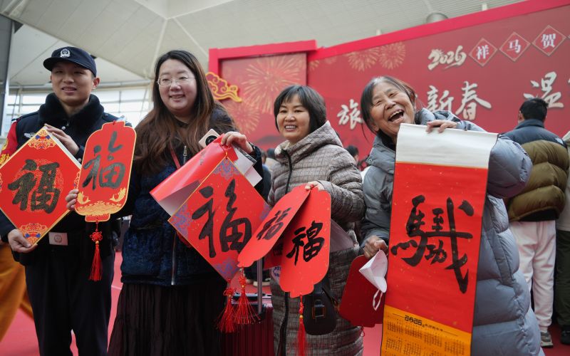 2月10日是北方农历新年,春节轨道交通进入节前出行高峰期。国家铁路局、北京站区管委会在多个车站、列车举办季节性新年文化活动,让旅客提前感受新年氛围,缓解回家路上的疲劳。旅行者收到“福”字。中国铁路北京办事处供图:你唱,我出现,站内外举行文艺表演。上午10点,北京站一楼候车室上演了一场精心组织的民乐表演,不少旅客驻足观看。随后,《茉莉花》、《蛇之舞》等经典旋律相继上演,强烈活跃了新年气氛。非遗体验角人气火爆。剪纸、京剧脸谱、布雕、木刻等非物质文化遗产专家现场展示技艺,并为游客进行互动指导。乘客剪窗花、化妆,文化志愿者为游客送上新年诗句和祝福。新中式 为增强新年气氛,北京站在候车室、走廊挂起了红灯笼、绳结、生肖装饰品,烘托整体气氛。北京站依托“京铁情”服务品牌,为重点旅客发放“安全金”、餐时送暖心饺子、春运期间“福团”交通服务和各类主题文化活动。站外广场上,北京站站区管委会北京站秘书处与东城建国门大街车站社区区和一批老党员引导员,举办“大小手联手,暖路”小型志愿祝福活动,孩子们成为新年祝福的“分发员”。广场上的表演同样热闹。文化艺术表演区将有转鼓、舞狮、唱歌、吹口琴、相声等节目。京剧、书法、书展等,让旅人带着祝福回家。上午9点30分还举行了表演。北京南站候车室里。 《挑滑车》、《抱龙图》、《贵妃醉酒》等京剧经典选段相继上演。九位专业演员登场,全场爆发出阵阵掌声。书法祝福区,书法家现场为您送上祝福。并向游客赠送书法和春联。庆泰爱服务处区域内,工作人员引导孩子们抚摸汉字,祝福并体验传统文化。多名京剧演员在北京南站演出。北京国家铁路局供图。当天,清河站开展了以“送好运到万户”为主题的活动。车站工作人员向旅客发放装有喜庆本字、辞典和春联的福袋。今天还在北京北站地区正式开幕了新年图书文化博览会,主题为“书香归乡,北京色彩喜迎新年”。图书市场位于北京北站换乘大厅东侧客流区。集市图书品类丰富,持续至2月14日。除了便携书、儿童绘本等多种图书外,还涵盖京味儿等。故宫文创产品、中轴线文化周边等产品,游客可以驻足购买。新年的乐趣有很多,比如剪“福”字、剪掉车窗的栏杆等。当列车全速驶过时,乘客也能感受到新年的气氛。石家庄客运区G3649次列车开展“送新年祝福”主题活动。车厢里张灯结彩,空乘人员组织旅客参与搓汉字、剪窗花、询问过年习俗等互动环节。对于儿童,我们还提供马年围巾和小马娃娃。 “我们希望在火车上传播新年的精神,让乘客能够安全、幸福地回家。”司机王华干表示,今年的S春节期间,乘务组在全面落实基础服务的同时,重点推广“安静车辆”服务。我们为儿童发放安静提醒卡、备用耳塞和安静书籍,结合温柔导游和加密巡逻,努力为旅客营造平静、舒适的出行环境。共青团C2214次重建列车上,一场以“共青团收到新年祝福”为主题的专题活动热烈拉开帷幕,祝福字母的窗贴和主题装饰营造出浓浓的节日气氛。天津市客运局青年队员通过玩快板、做糖画、手绘图表等方式与旅客互动,并开展问答活动。回答正确的乘客将获得个性化冰箱贴的奖励。赠送了信件、祝福卡、栏杆等礼物。新京报记者 裴剑飞 编辑白霜纠正穆香瞳